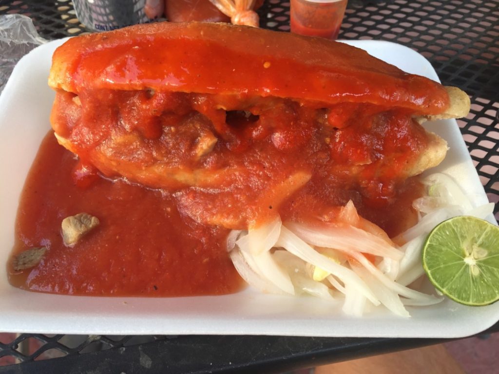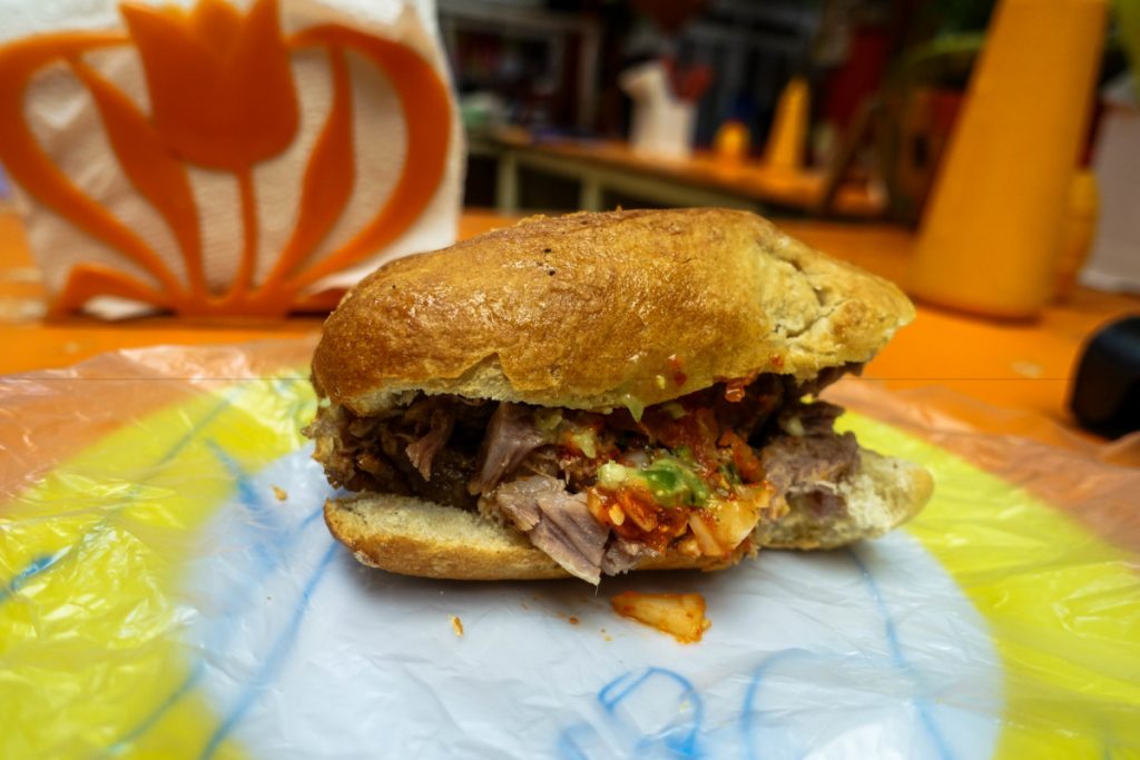 While you’re in Guadalajara, I would highly recommend grabbing yourself one of the local dishes, Tortas Ahogadas – which is basically a pork sandwich drenched in tomato salsa. It’s a humble, moresome and messy meal!