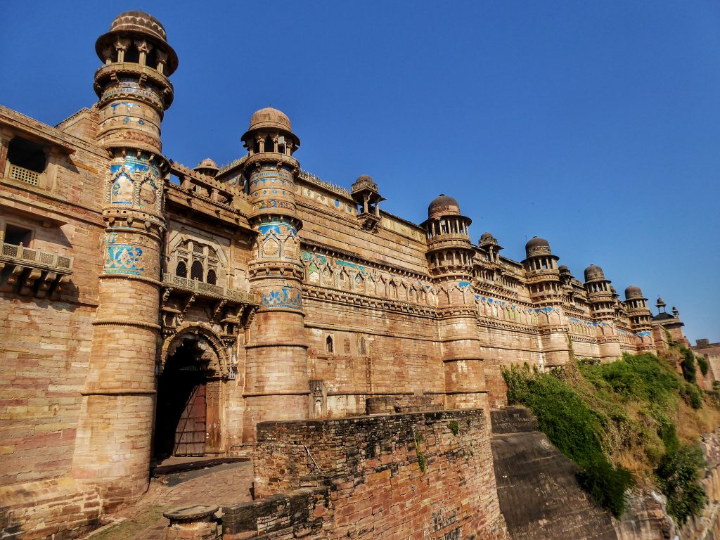 The highlight of visiting Gwalior is undoubtedly exploring the imposing and impressive hilltop Gwalior Fort. The fort’s history stretches back to the 8th century and has noticeable elements from various periods in history. The complex is dominated by the Man Singh Palace, which is still distinctively decorated its circular towers and turquoise tiles, there is also several smaller palaces, museums and temples, and of course magnificent views over the city.