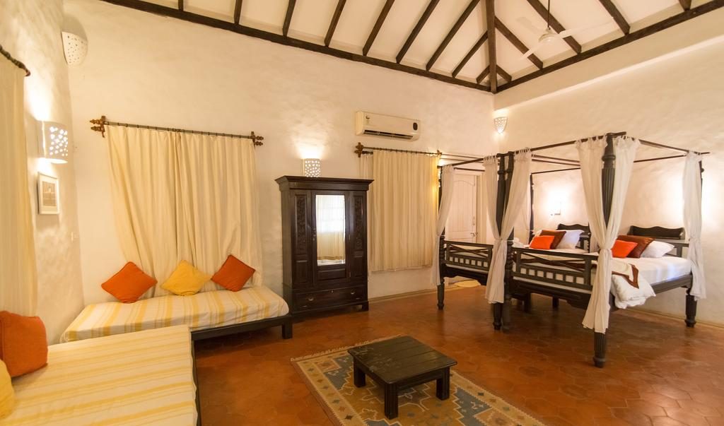 Rooms are comfortable and simple but some have lovely outdoor bathrooms. The hospitality and food were also good and its away from the noise and crowds of Anjuna whilst still being within easy reach. Check here for prices, photos, reviews and bookings. Also check out Palacete Rodrigues, Anjuna a quirky Portuguese mansion with a pool and individually themed rooms stuffed with antiques.